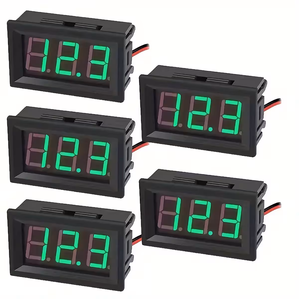 Šajā komplektā ir 5 gabali panelī montējamu digitālo voltmetru, kas lieliski piemēroti līdzstrāvas sprieguma mērīšanai plašā diapazonā. Ar skaidru zaļu LED displeju un barošanu tieši no mērītā sprieguma, šie voltmetri ir ideāli automobiļu, saules sistēmu, DIY projektu un elektronikas lietojumiem.
