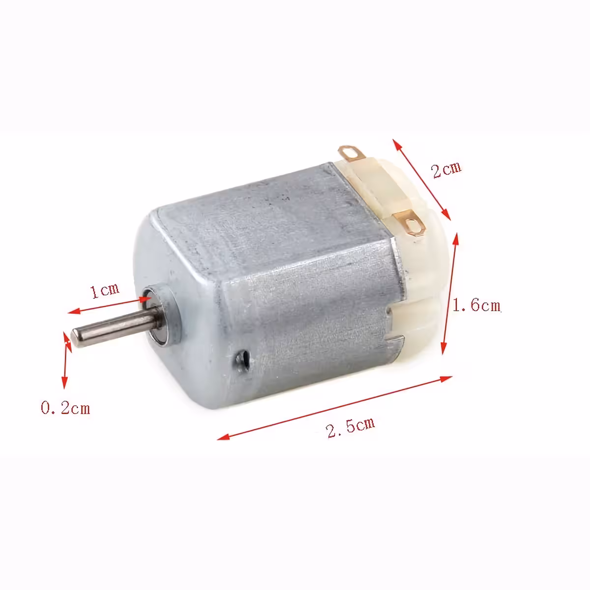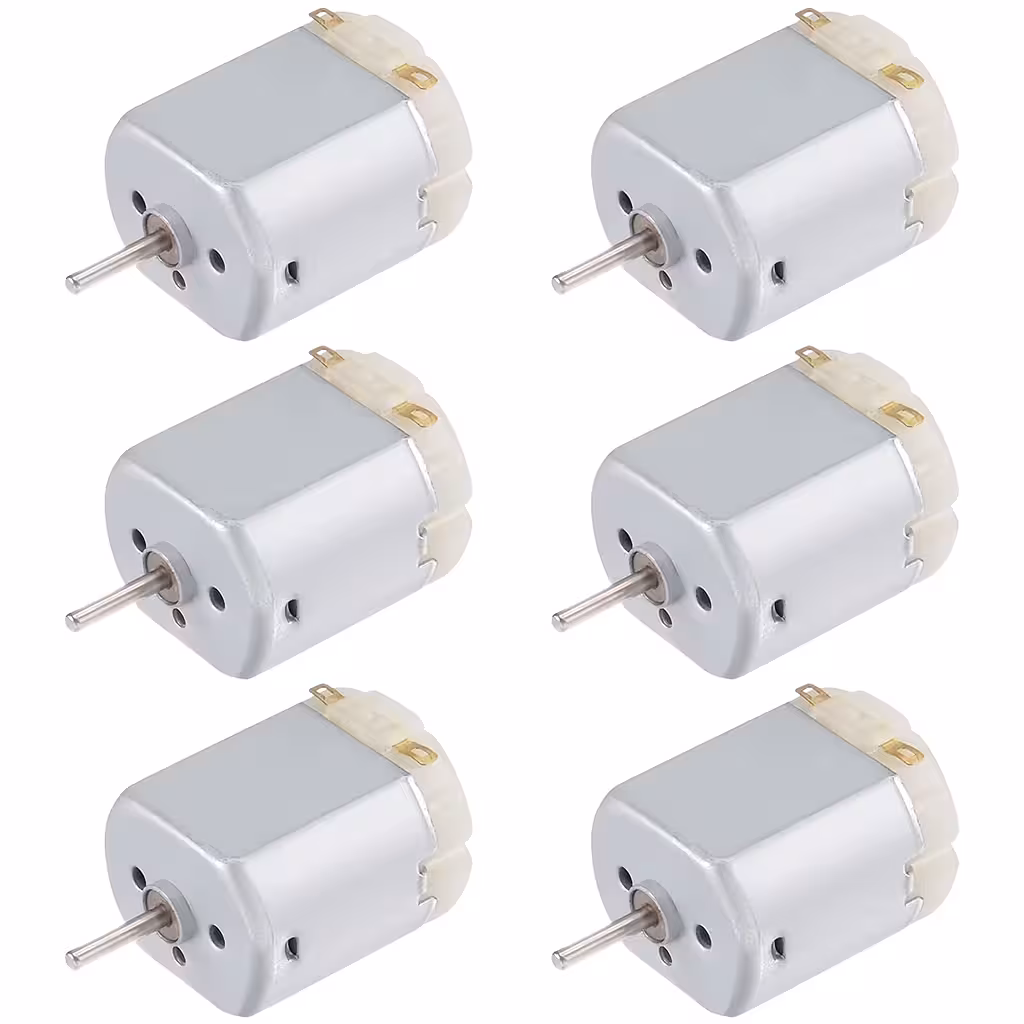 Komplekts ietver 6 DC Mini Motors 130, ideāli piemēroti izglītības projektiem, robotu izstrādei, ventilatoriem un vienkāršiem mehānismiem. Darbojas ar 3–6 V DC, nodrošinot augstu apgriezienu ātrumu un kompaktus izmērus. Vārpsta Ø2 mm × 8 mm ir saderīga ar standarta riteņiem un zobratiem mikro-motoriem.