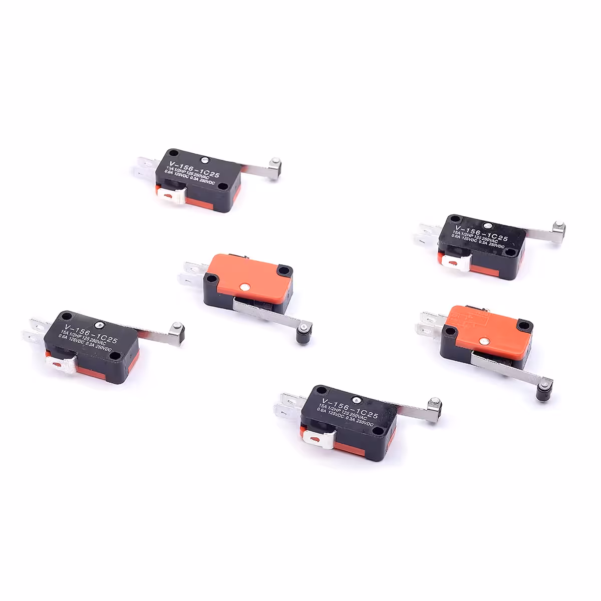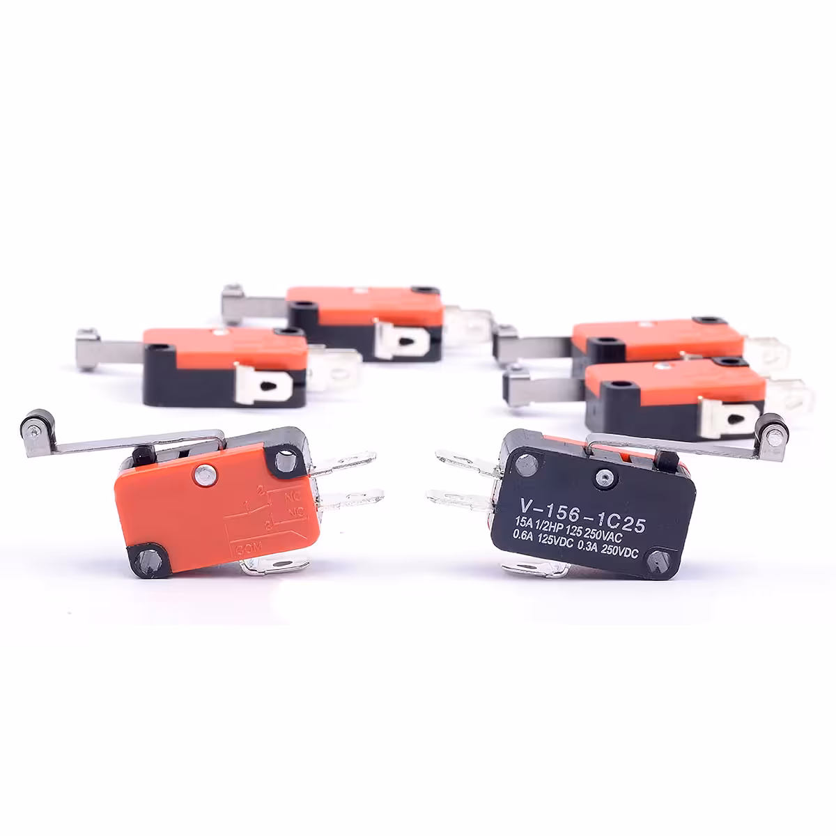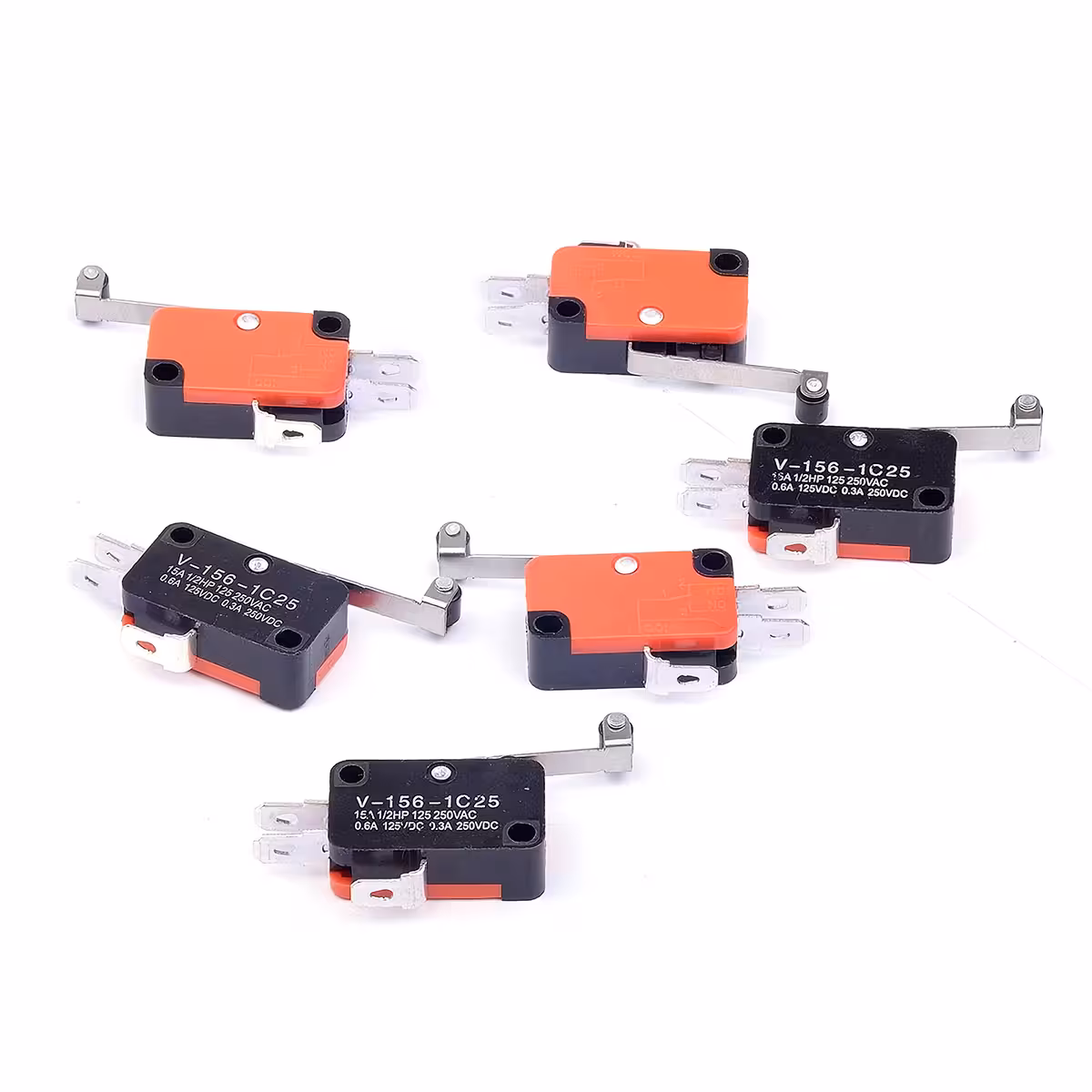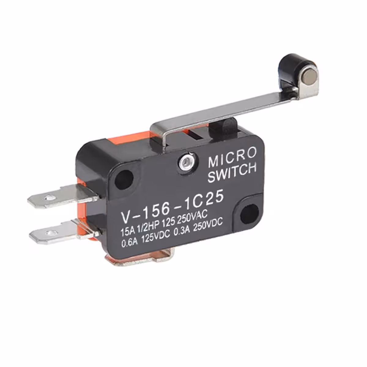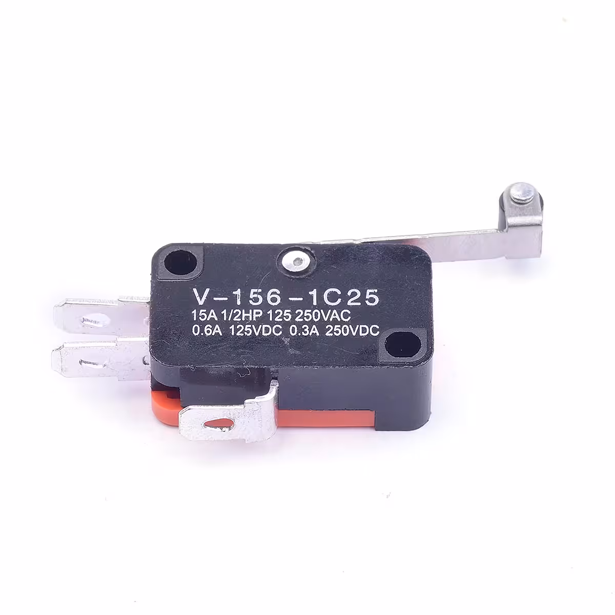 Modelis V-156-1C25 ir gājiena ierobežošanas slēdzis ar riteni, atsperi un garu sviru, paredzēts AC un DC ķēdēm. Tas nodrošina ātru reakciju, pateicoties momentālajam snap-action mehānismam, un ir ideāli piemērots rūpnieciskām lietojumprogrammām, automatizētām iekārtām un kustības vadības sistēmām. Šāda veida mikroslēdzis tiek izmantots, lai uzraudzītu mehānisko komponentu pozīciju un gājiena ierobežojumus, automātiski signalizējot, ja tie tiek pārsniegti. Pateicoties izturīgajam metāla un plastmasas korpusam, tas iztur prasīgus apstākļus un nodrošina stabilu darbību ilgtermiņā.