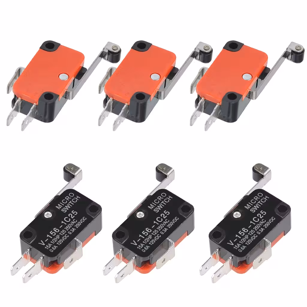 6 gabali – gala slēdža slēdzis ar rullīti un garo sviru (endstop) – industriālais mikroslēdzis 15A AC/DC