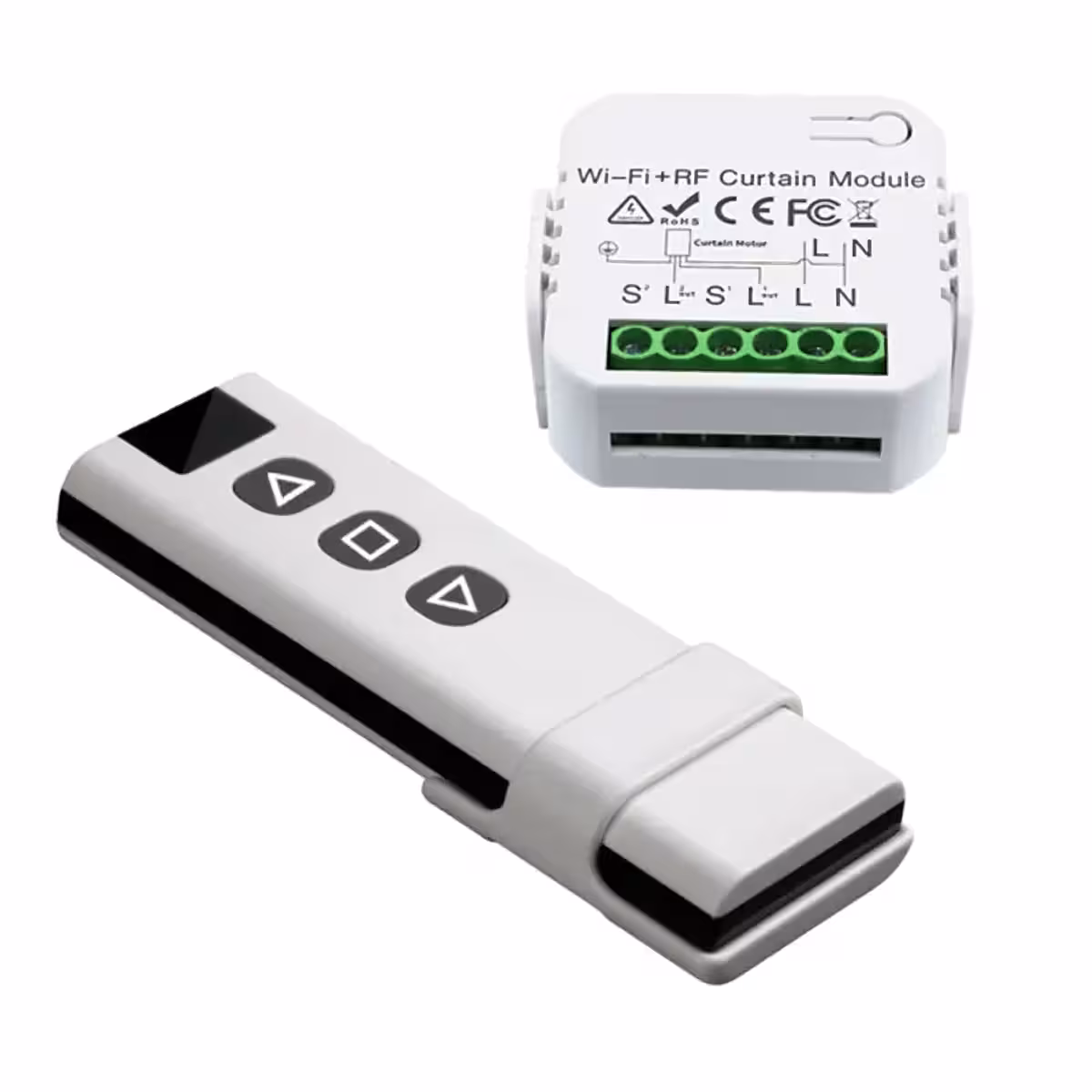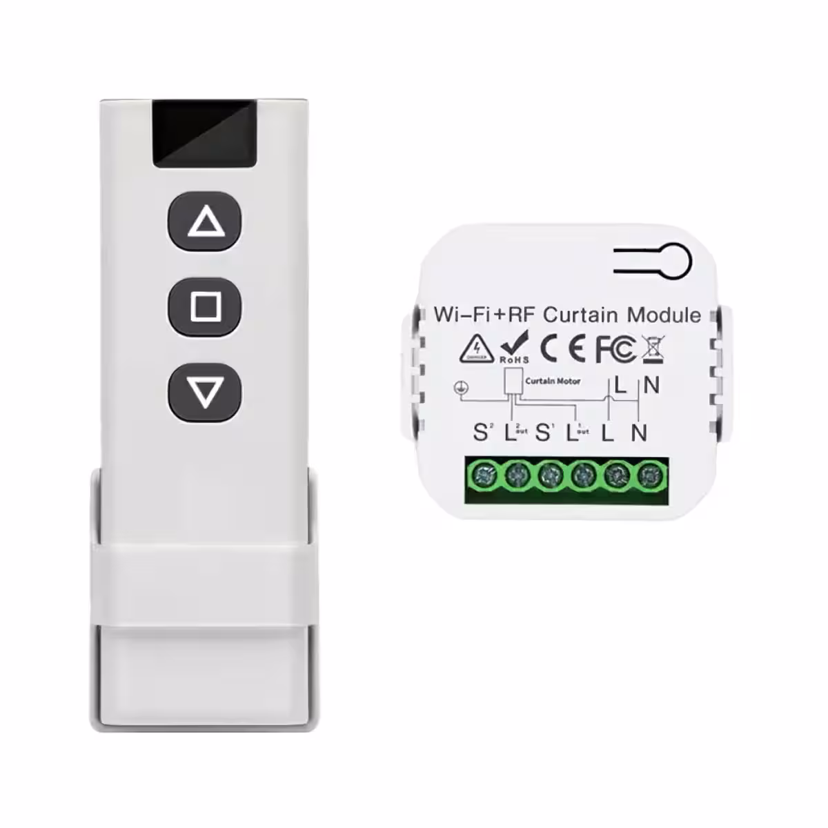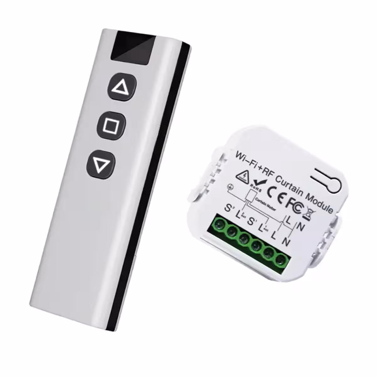 • 1 x WiFi + RF kontrolieris rullo žalūzijām, žalūzijām, aizkariem, drapējām, markīzēm utt.