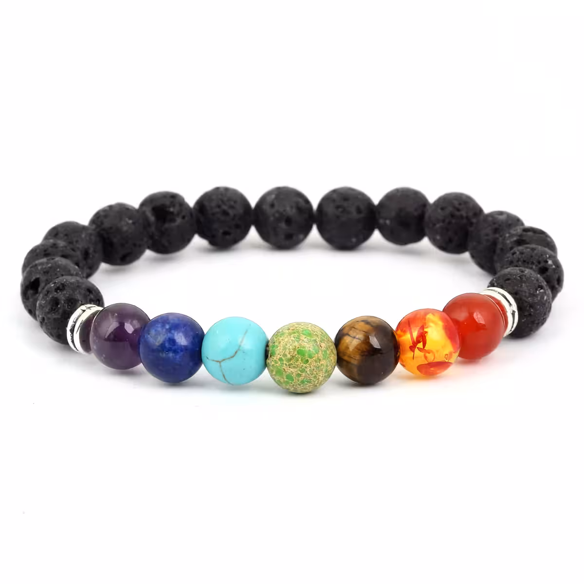 Dabīgā Vulkaniskā Akmens Aproce 7 Čakras – Ametists, Lapis Lazuli, Dzintars, Tīģera Acs, Agāts