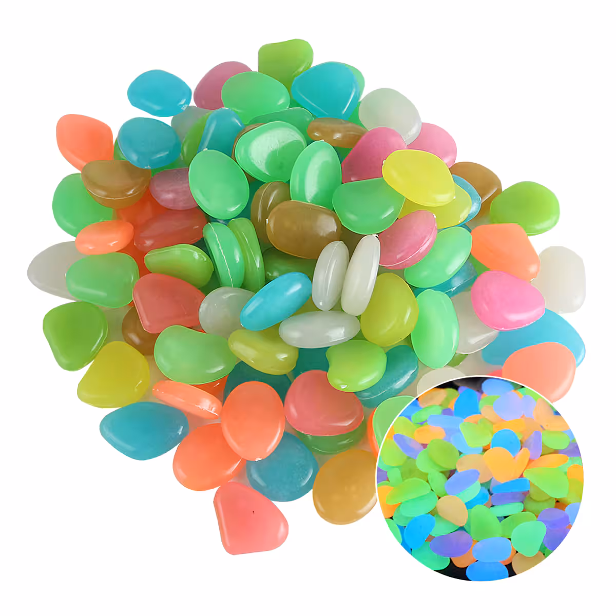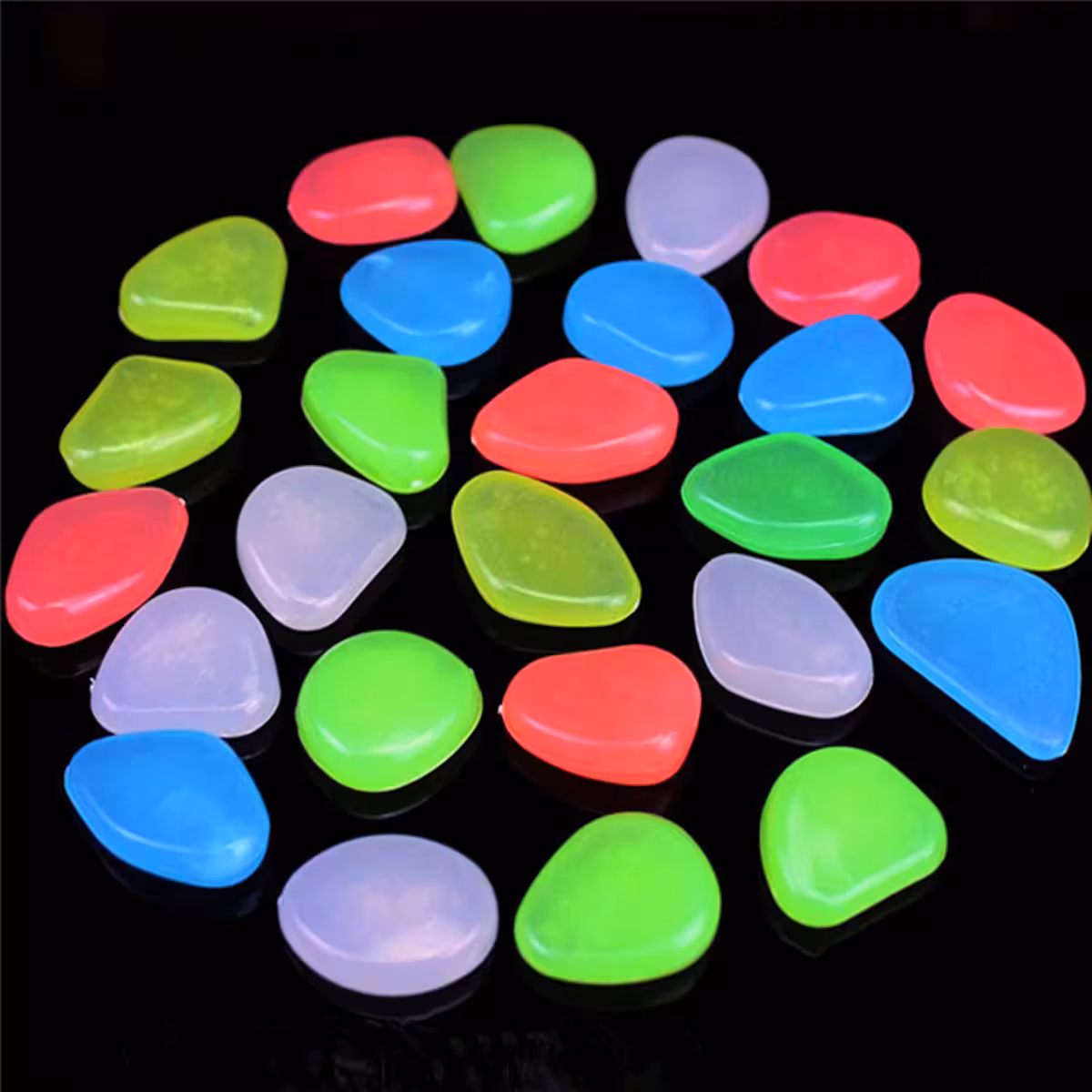 Gaismas akmentiņi ideāli dekoratīvai izmantošanai dārzā, pagalmā, akvārijos, puķu podos, palodzes, baseinos un peldbaseinos. Šie mirdzošie akmentiņi var tikt izmantoti taku un celiņu apgaismošanai vai pat mājas interjerā, radot iespaidīgu atmosfērisku efektu.