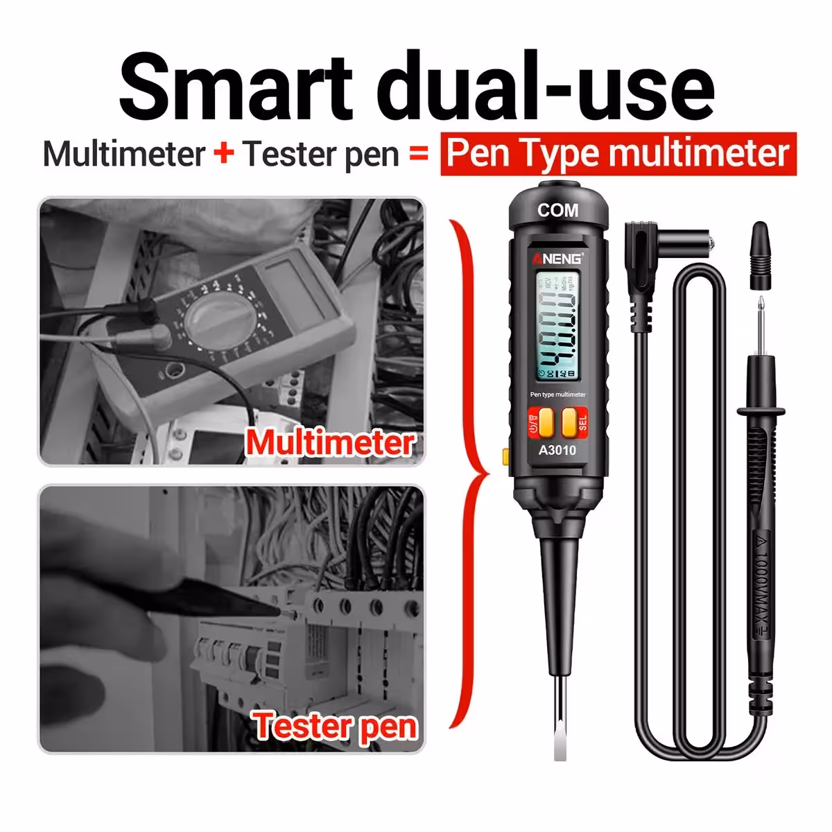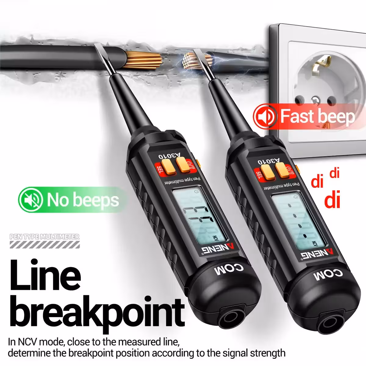 Atklāj daudzfunkcionālu sprieguma testeru, ideāli piemērotu auto diagnostikai, DIY elektroprojektiem un mājas remontam. Šis digitālais sprieguma pildspalvas testers mēra AC/DC spriegumu, pretestību, frekvenci un ietver NCV funkciju, True-RMS un apgaismotu displeju. Nepieciešams jebkuram profesionālim vai elektronikas entuziastam.