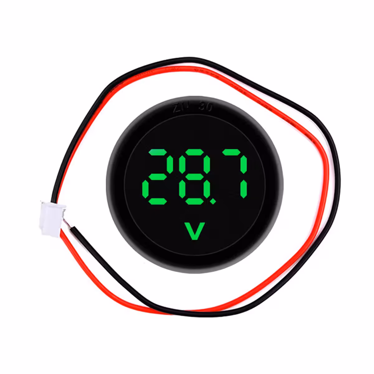 Digitālais voltmetrs ar zaļu LED apaļu displeju, ļoti plāns, ideāli piemērots precīzai DC sprieguma mērīšanai no 4V līdz 100V.