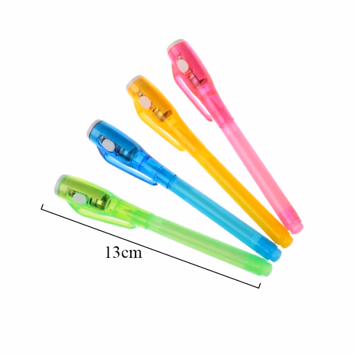Komplekts satur 5 neredzamu tinti pildspalvas, ideāli piemērotas jautrām aktivitātēm, slepenām vēstulēm vai slēptiem zīmējumiem. Tinte ir pilnīgi neredzama parastā apgaismojumā un to var izlasīt tikai, izmantojot iebūvēto UV lampu.