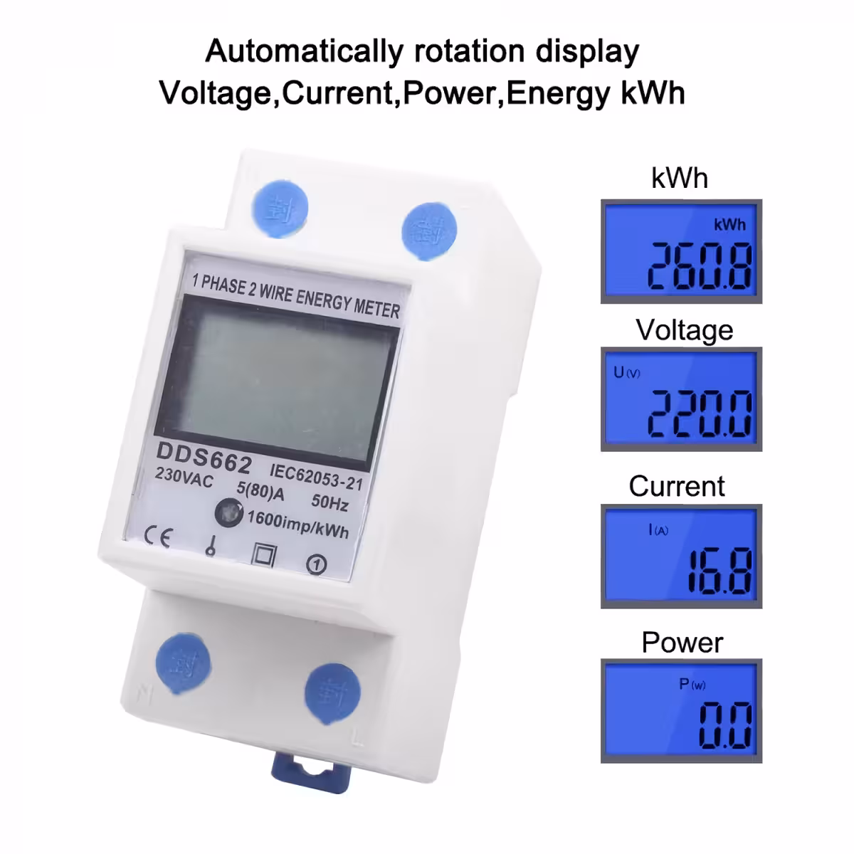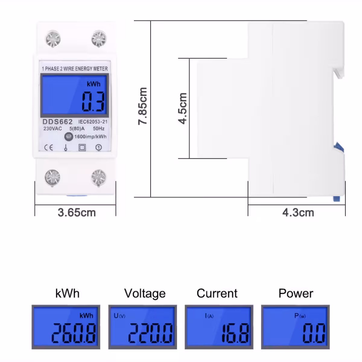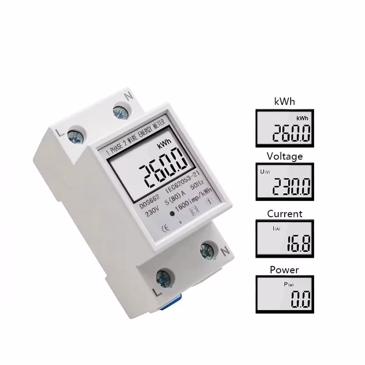 Jaunākās paaudzes monofāzes skaitītājs, uz DIN 35 mm sliedes caurlaide, ar LCD digitālo displeju, kas precīzi un uzticami mēra elektrības patēriņu (kWh). Ideāli piemērots dzīvojamo vai rūpniecisko objektu lietošanai, patēriņa, sprieguma, strāvas un jaudas uzraudzībai.