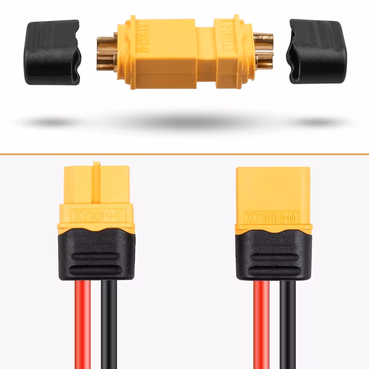 Komplekts ar 5 pāriem XT60H vīrietis + sieviete, ar zelta pārklājumu un karstumizturīgu neilona korpusu. Ideāli piemērots RC, BMS, skrejriteņi un elektriskie velosipēdi. XT60H ir uzlabotā XT60 standarta versija, piedāvājot zelta kontaktus, lielāku strāvas izturību un savietojamību ar standarta XT60 savienotājiem.